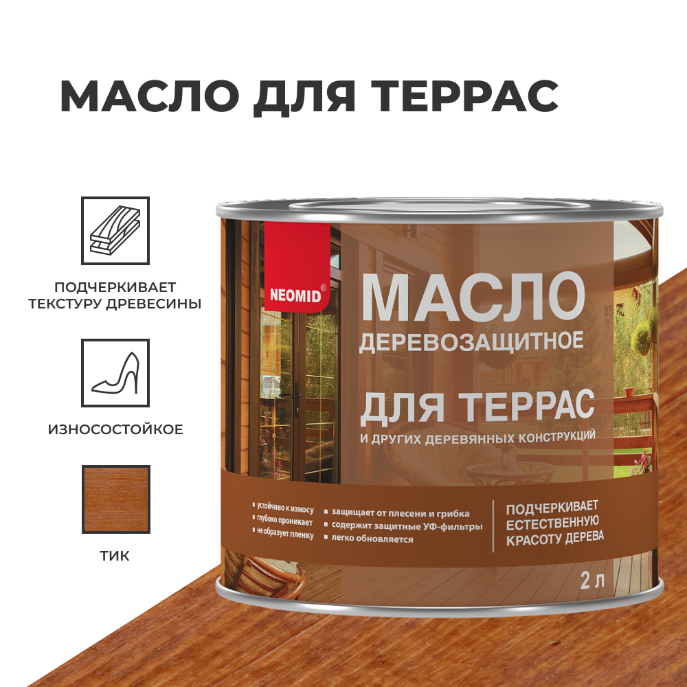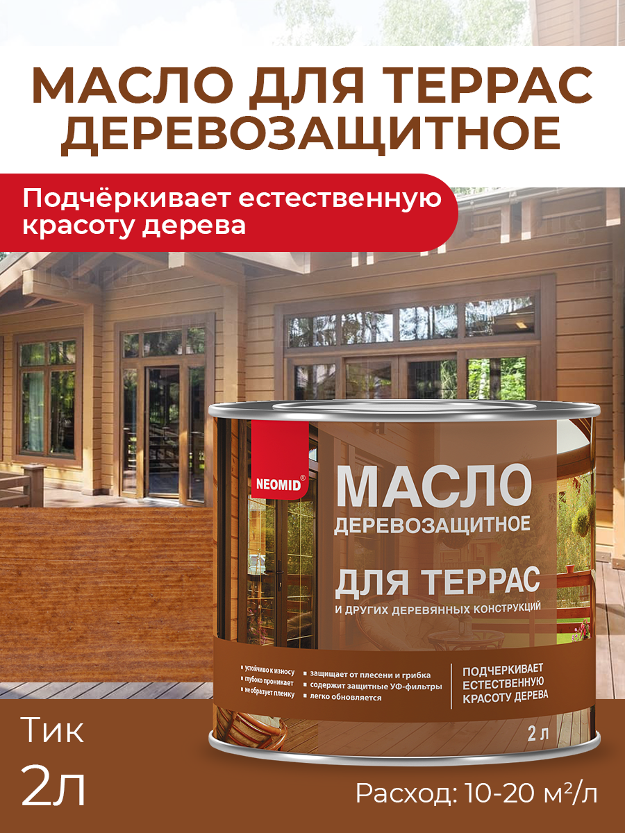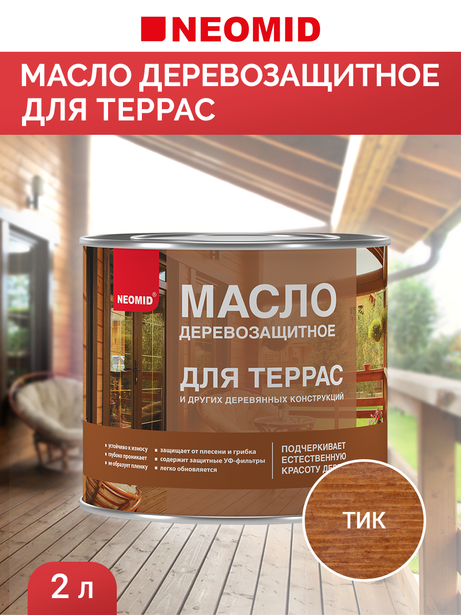 Купить Масло для Террас Neomid 2л Тик Деревозащитное для Внутренних и Наружных Работ / Неомид.