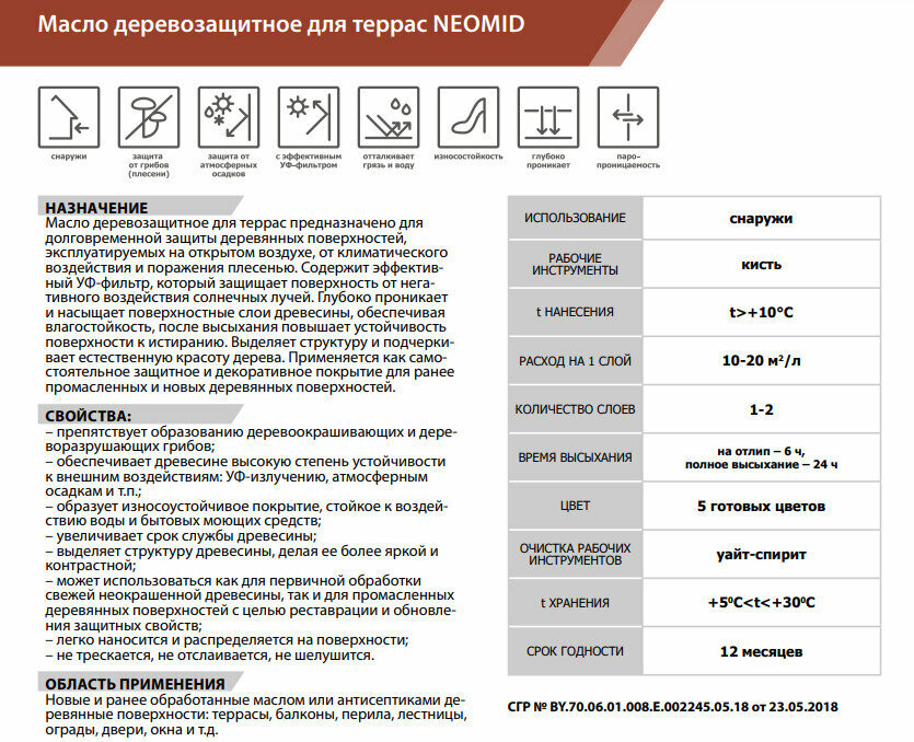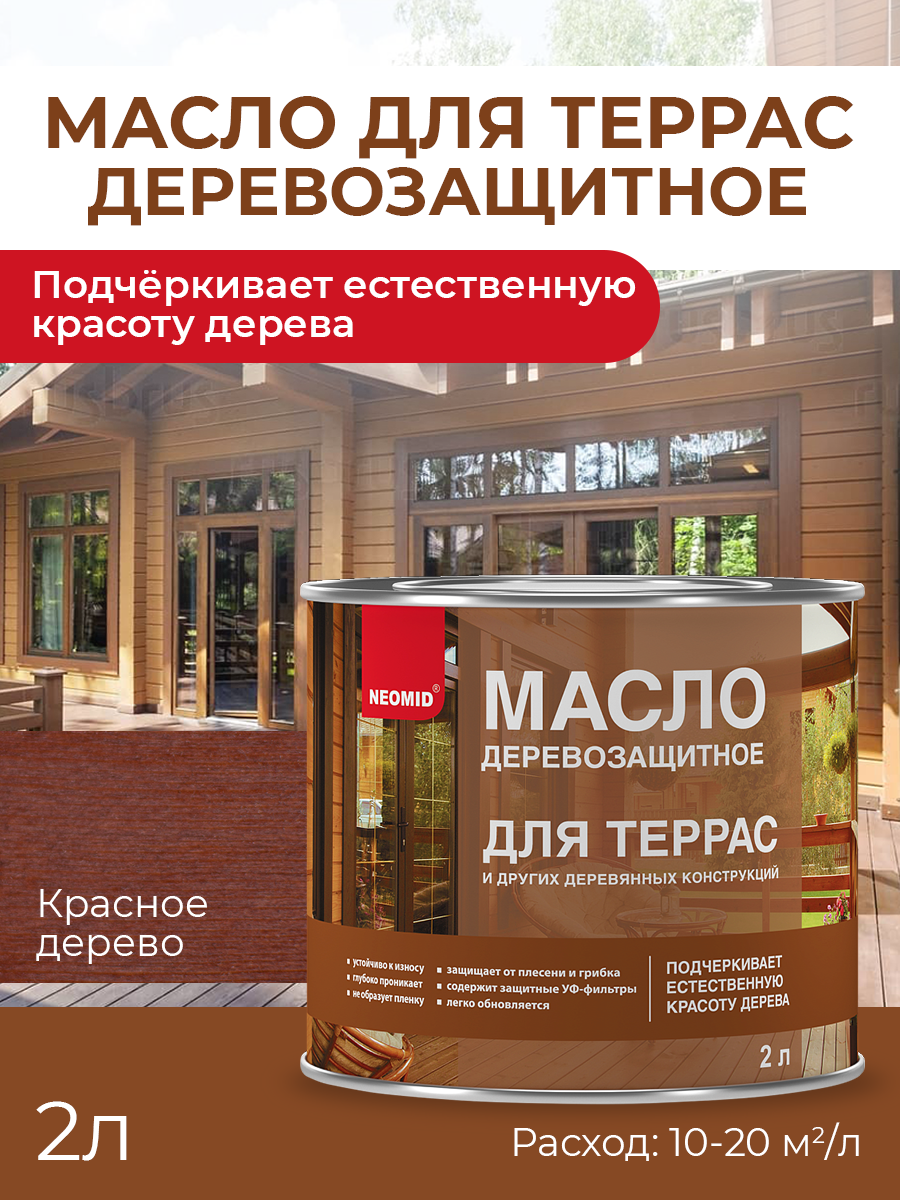 Купить Масло для Террас Neomid 2л Красное Дерево Деревозащитное для Внутренних и Наружных Работ / Неомид.