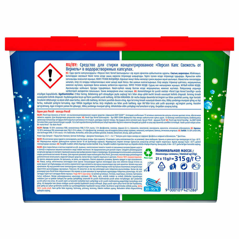 Капсулы для стирки персил 21 шт пауэр капс свежесть от вернель 4 в1