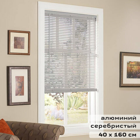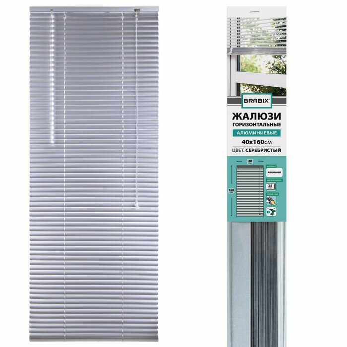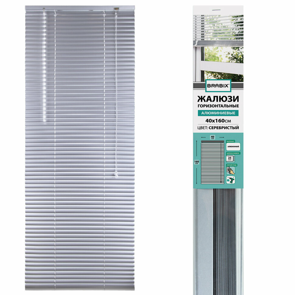 Жалюзи горизонтальные BRABIX 40х160 см, алюминий, цвет серебристый, 606031 (арт. 606031)