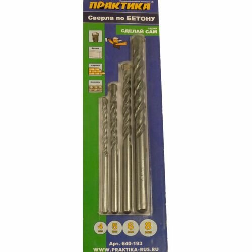 Набор сверл по бетону ПРАКТИКА "Сделай сам", 4 шт, 4,5,6, 8 мм, блистер (640-193)