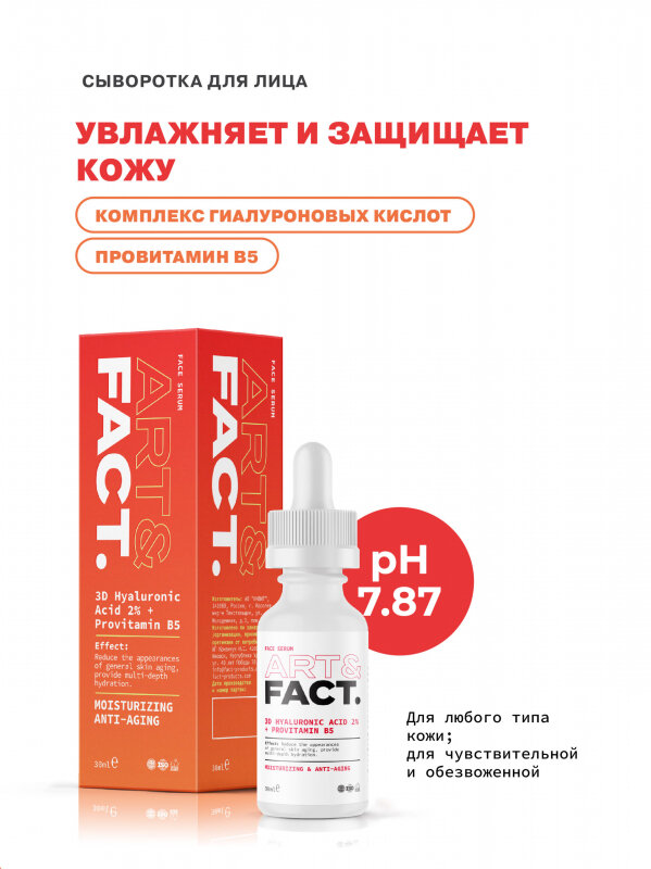 ART&FACT. / Сыворотка для ухода за кожей лица с низкомолекулярной гиалуроновой кислотой, провитамином B5 и кроссполимером гиалуроновой кислот, 30 мл