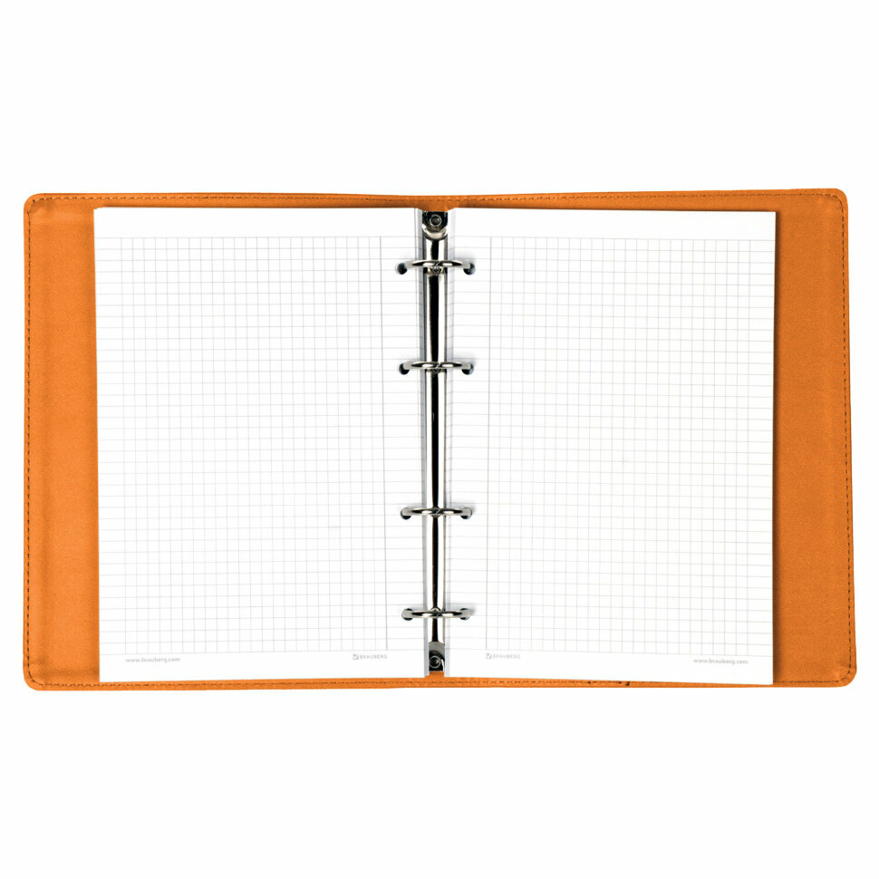 Тетрадь на кольцах А5 (180х220 мм), 120 листов, под кожу, клетка, Brauberg Joy, оранжевый/светло-оранжевый, 129992