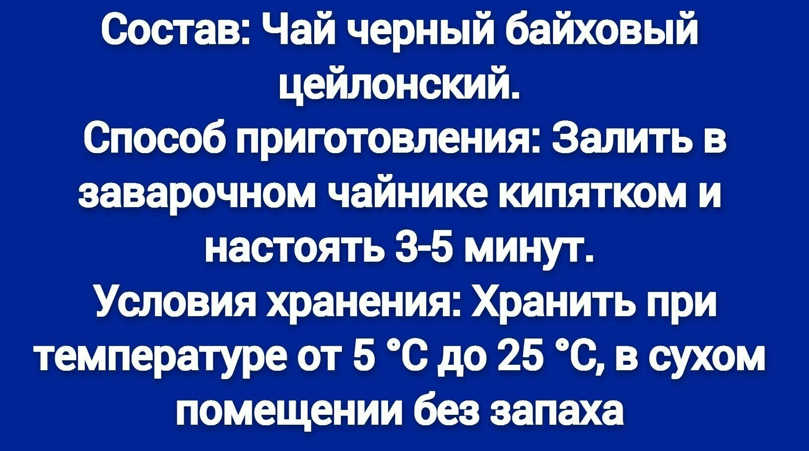 | Способ приготовления | залить кипятком, дать настояться 4 минуты |