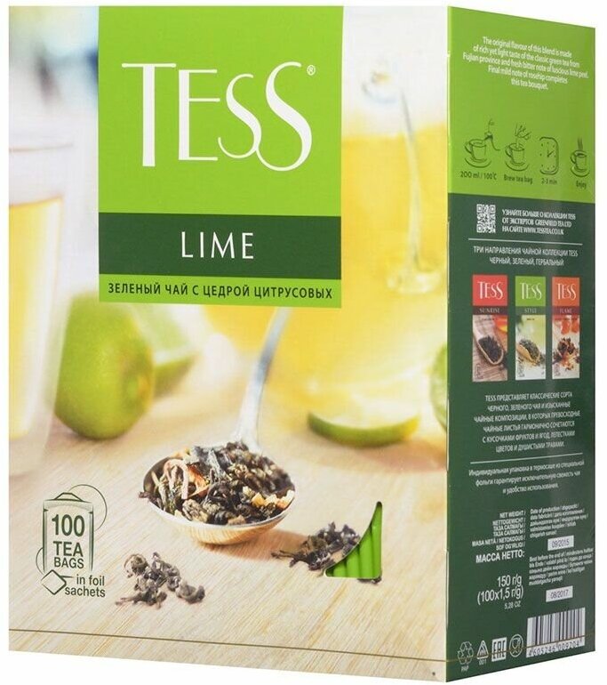 TESS зеленый чай с цедрой цитрусовых и ароматом лайма пакетированный LIME 1,5г*100п