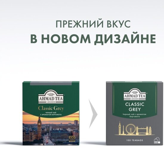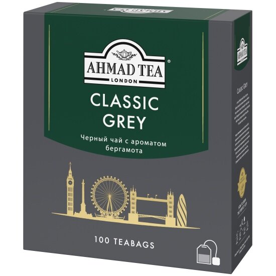 2425 Чай "Ahmad Tea", Чай Классик Грей, черный, пакетики с ярлычками, 100х1,9г