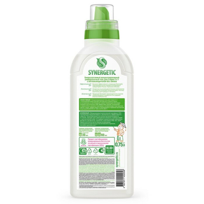 Гель для стирки Synergetic универсальный, 2 в 1, 750 мл (109802)