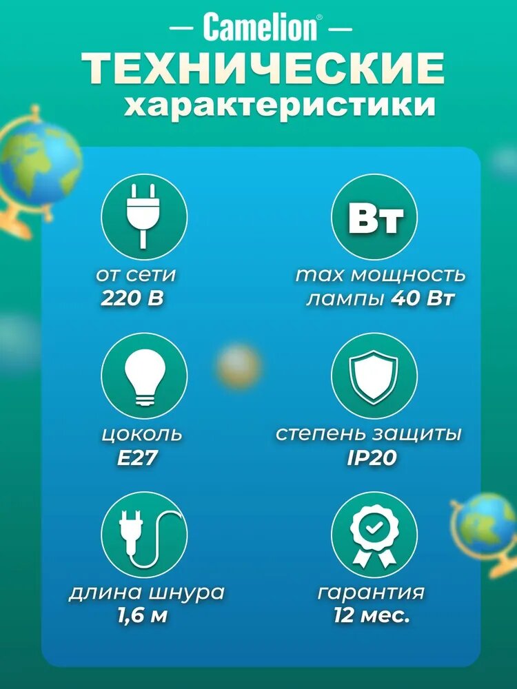 Светодиодный настольный CAMELION KD-335 C24 230V, 40Вт, E27, изумрудный