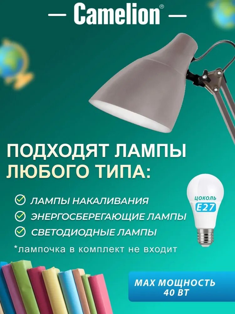Лампа офисная Camelion KD-335 C09, E27, 40 Вт, серый