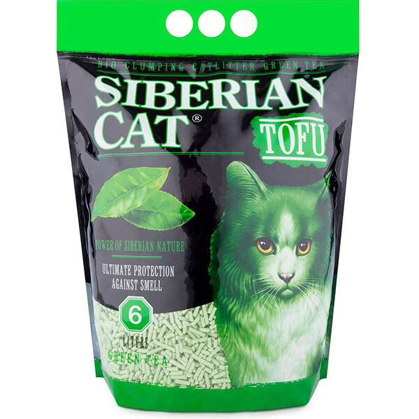 Сибирская кошка тофу наполнитель комкующийся для туалета кошек с ароматом зеленого чая (6 л)