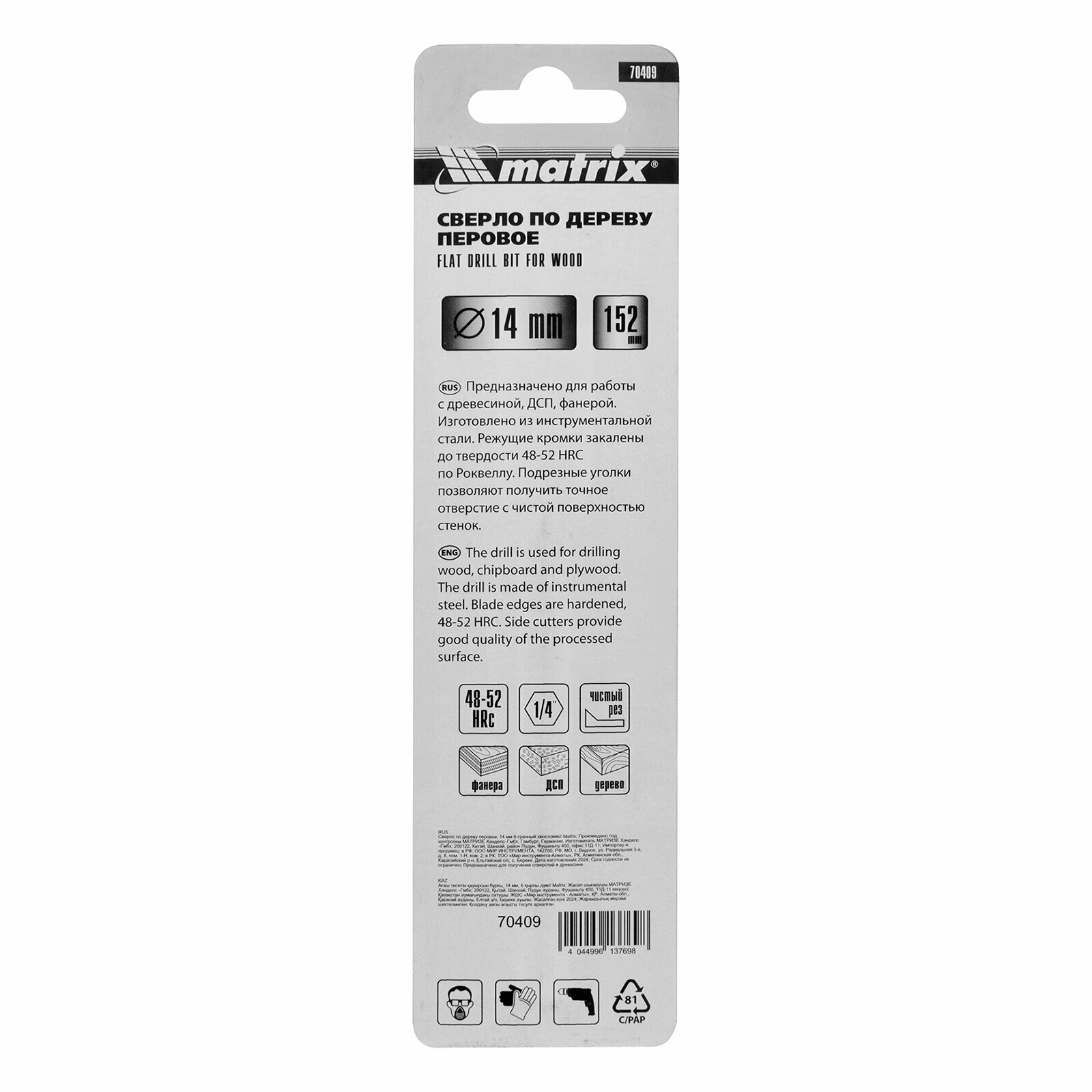 Сверло по дереву перовое 14 мм. шестигранный хвостовик Matrix интересное:
