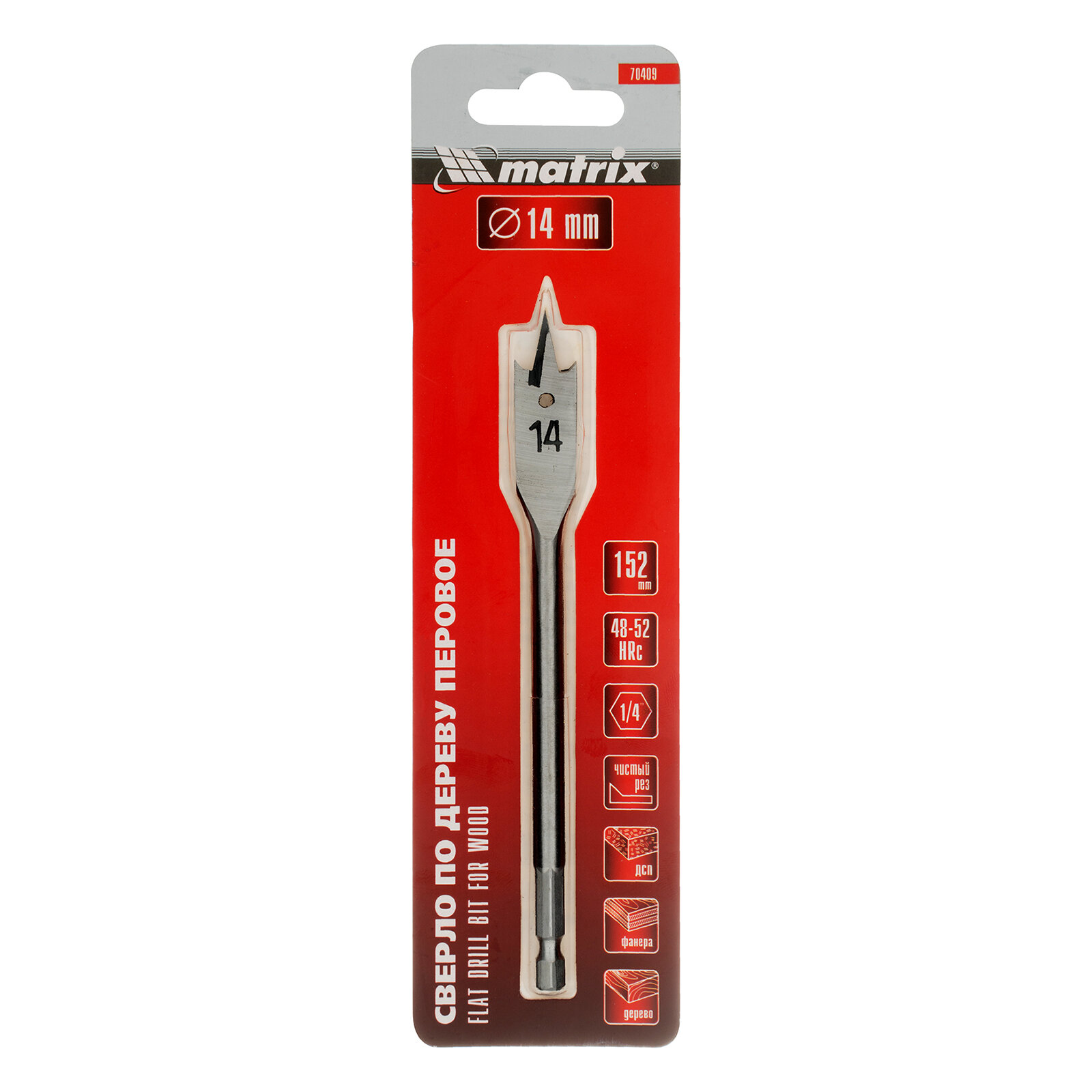 Сверло по дереву перовое, 14 мм 6-гран. хвостовик Matrix 70409