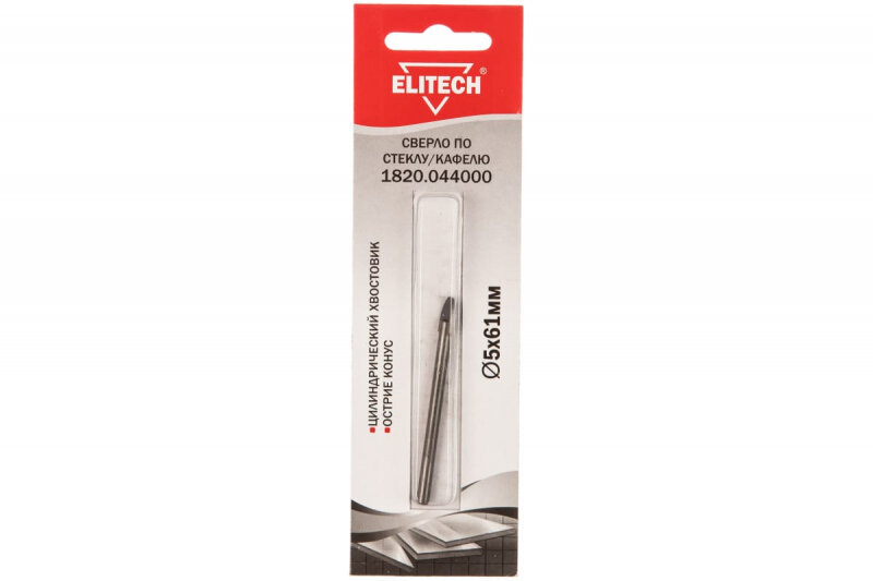 Купить Сверло Elitech 1820.044000 по каф/стекл Д=5мм Дл=61мм (1пред.) для дрелей
