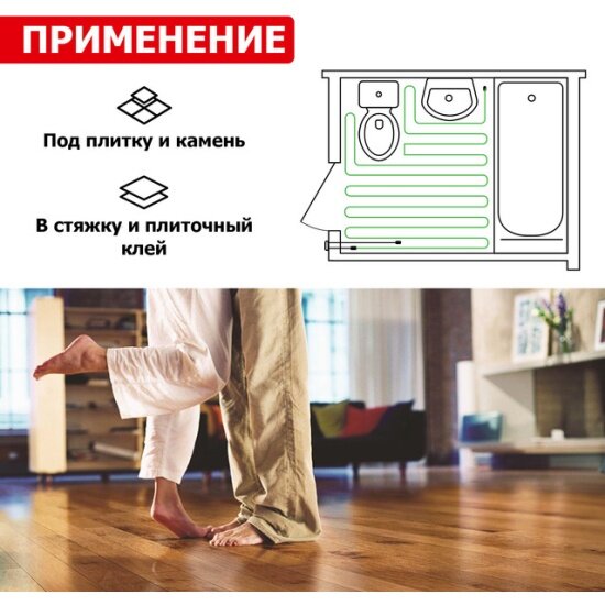Теплый пол Rexant RNB -22,5-270 /под плитку/ /270Вт/22,5м/ S обогрева, м2: 1,5-2,5/ /двух жильный/ 5 .