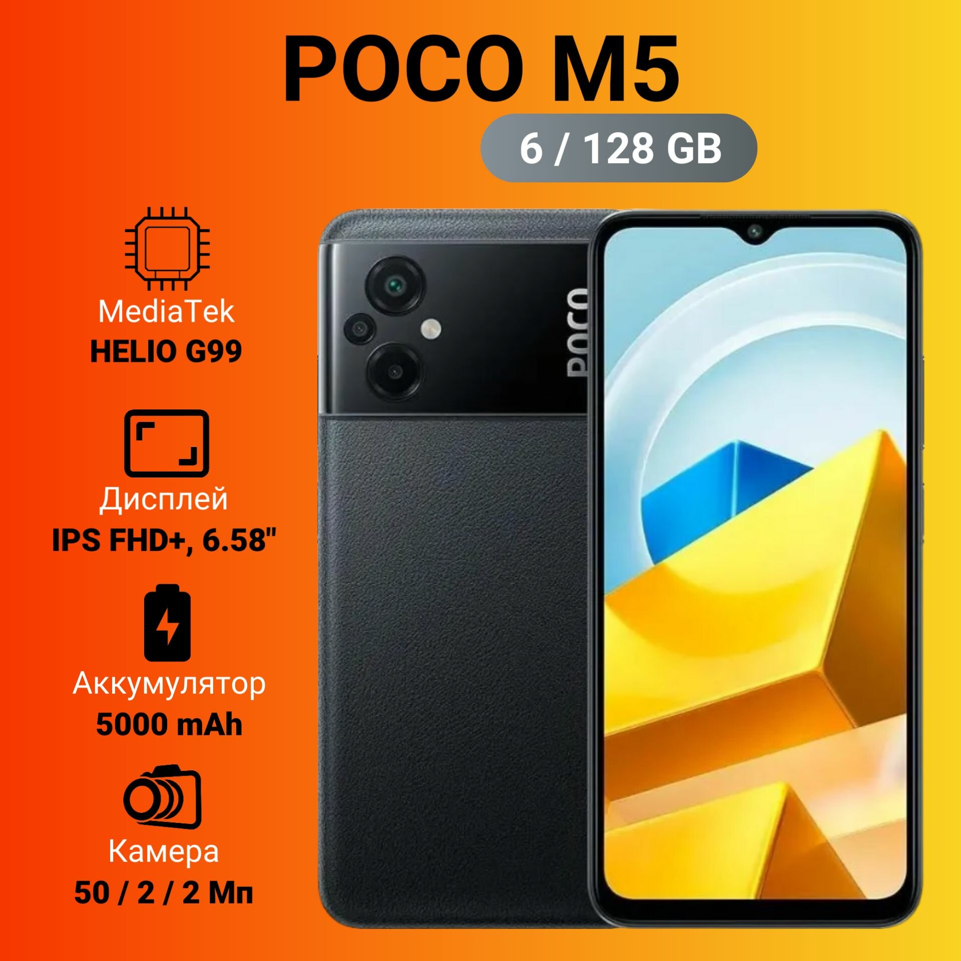 Смартфон POCO M5 6/128Gb черный, ростест(EAC)