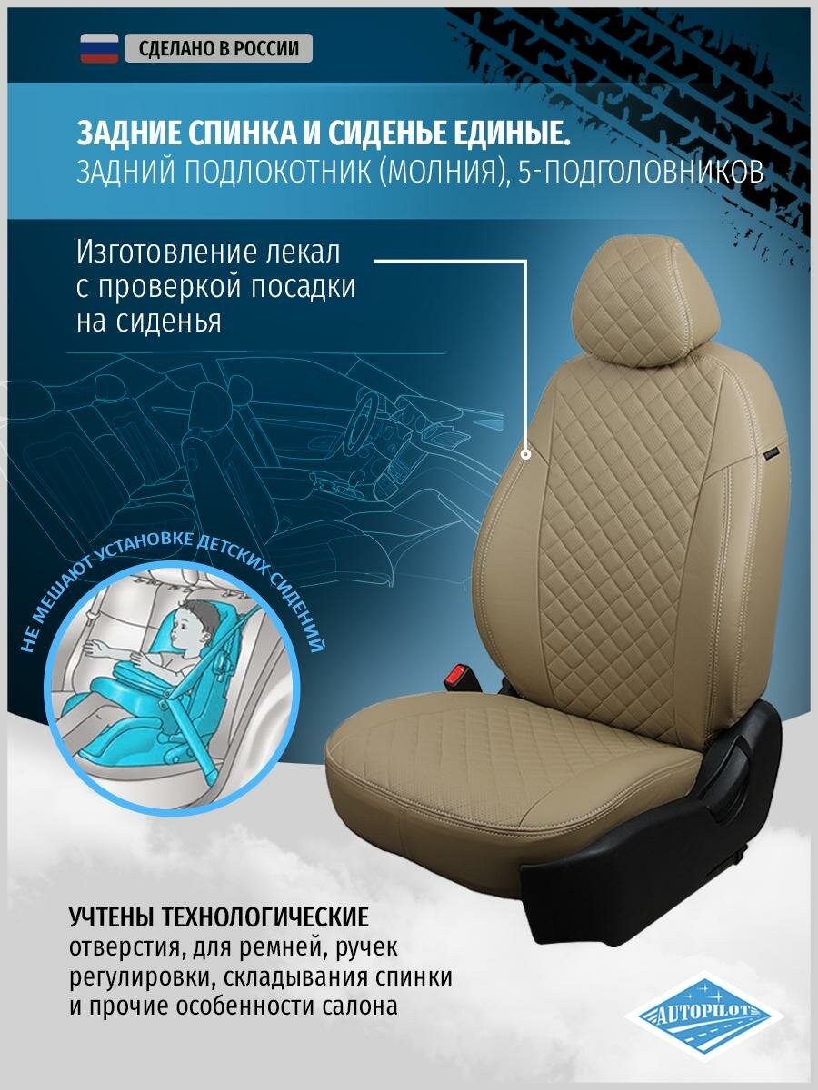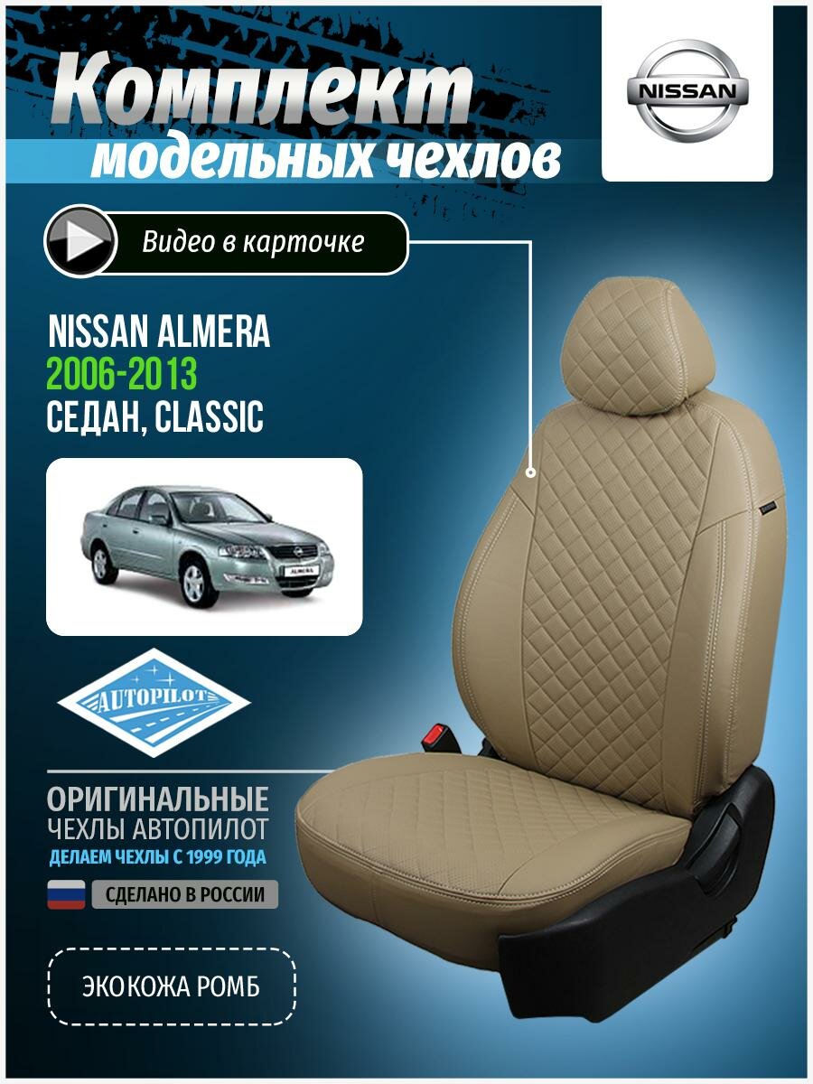 Чехлы для Nissan Almera 1 Classic 2006-2013 Автопилот Бежевый Экокожа с ромбом ni-al-0613-bebe-r