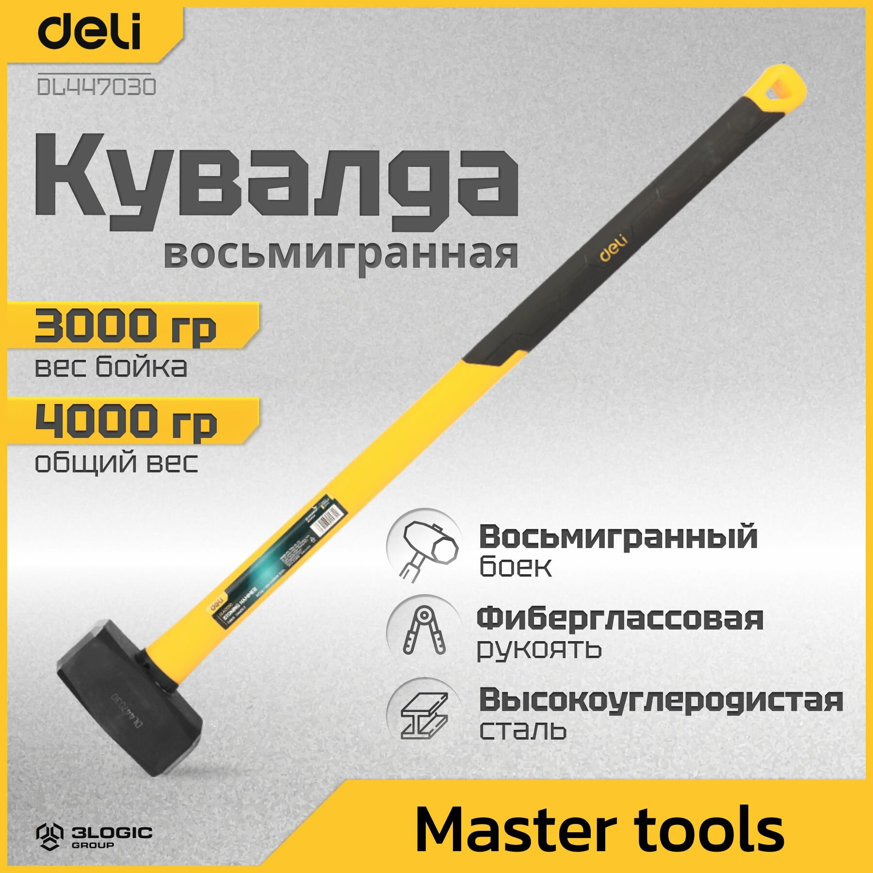 Кувалда универсальная Deli DL447030 3000гр (фиберглассовая рукоятка, углеродистая сталь) интересное: