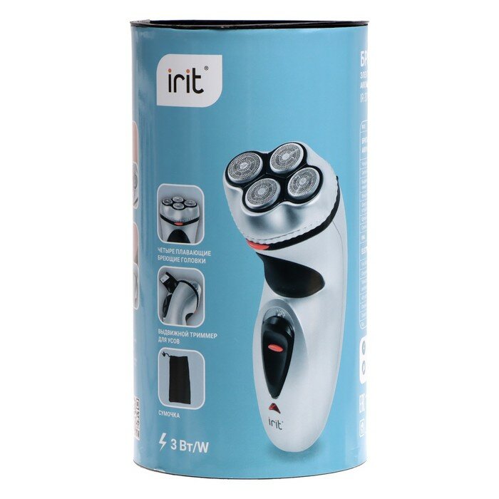 IRIT Электробритва Irit IR-3019, 3 Вт, роторная, 4 плавающие головки, АКБ, серая