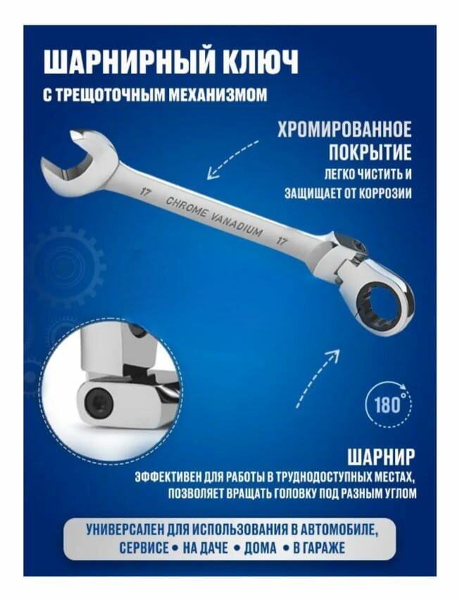 Набор ключей с трещоткой, набор комбинированных ключей с трещеткой и шарниром 7 предметов. интересное: