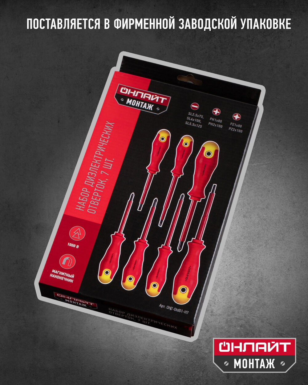 Купить Набор отверток диэлектрических онлайт 90 356, крестовые и шлицевые, 7 шт