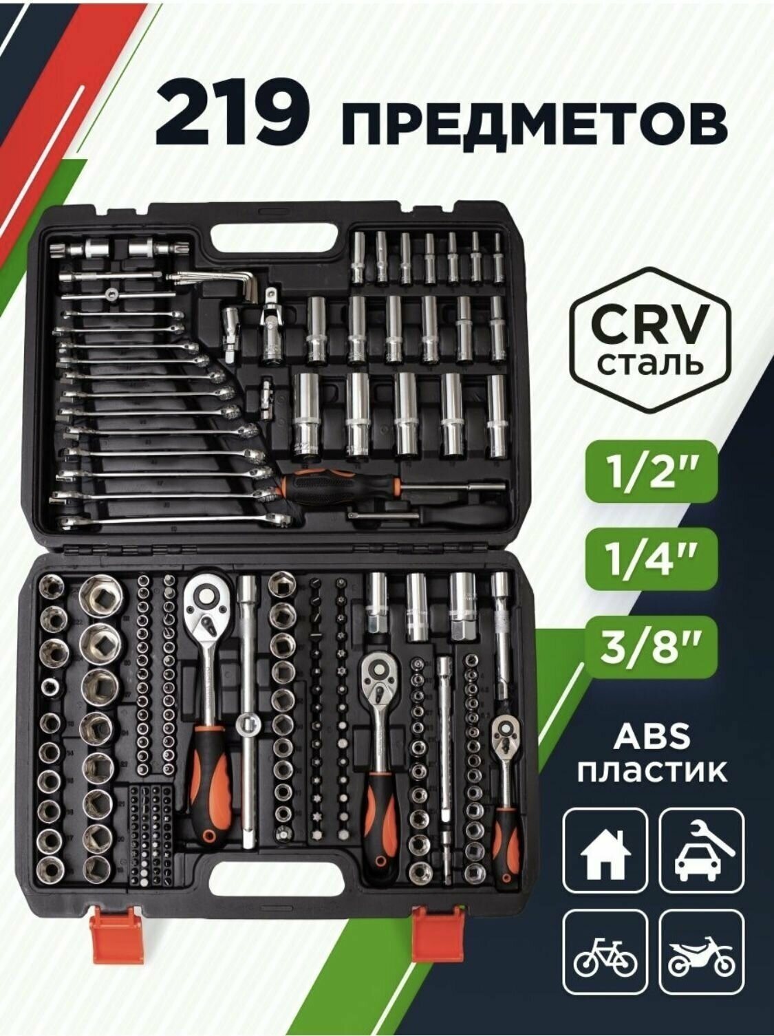Набор инструментов для автомобиля 219 предметов в кейсе (чемодане) для ремонта машины, для гаража, для дома. ключи головки трещотки интересное: