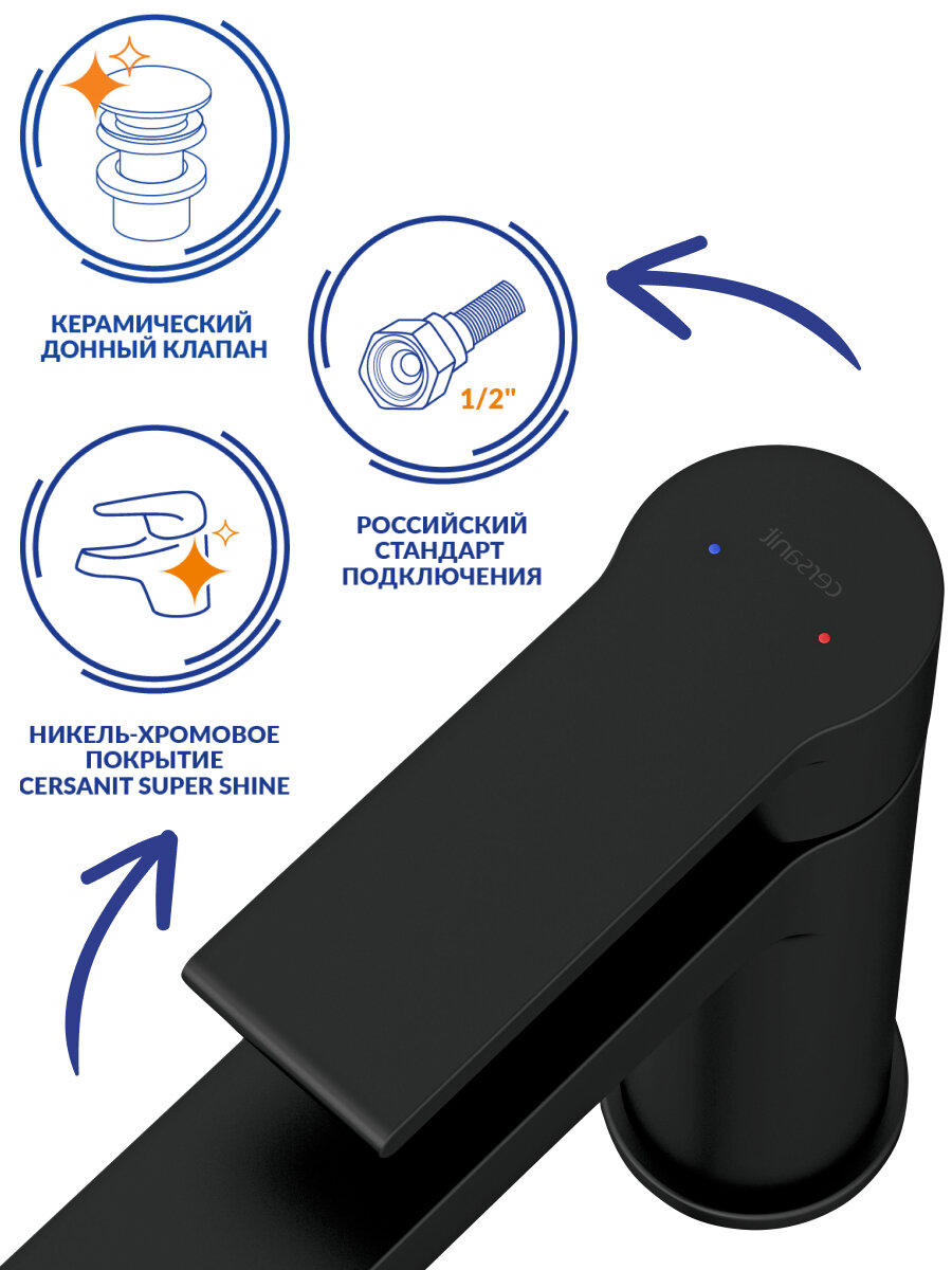 Смеситель для раковины Cersanit Brasko Black с донным клапаном, черный (63111, LM8500BL)
