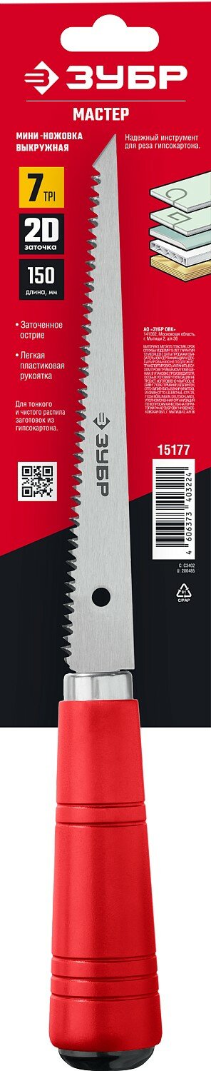 Пила ЗУБР мастер 15177, 150 мм, 7 TPI, пластиковая рукоятка интересное: