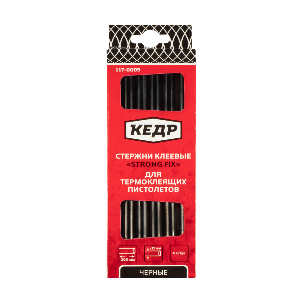 Клеевые стержни для термопистолета Кедр, 11,2 мм x 20 см, черные, 6 шт