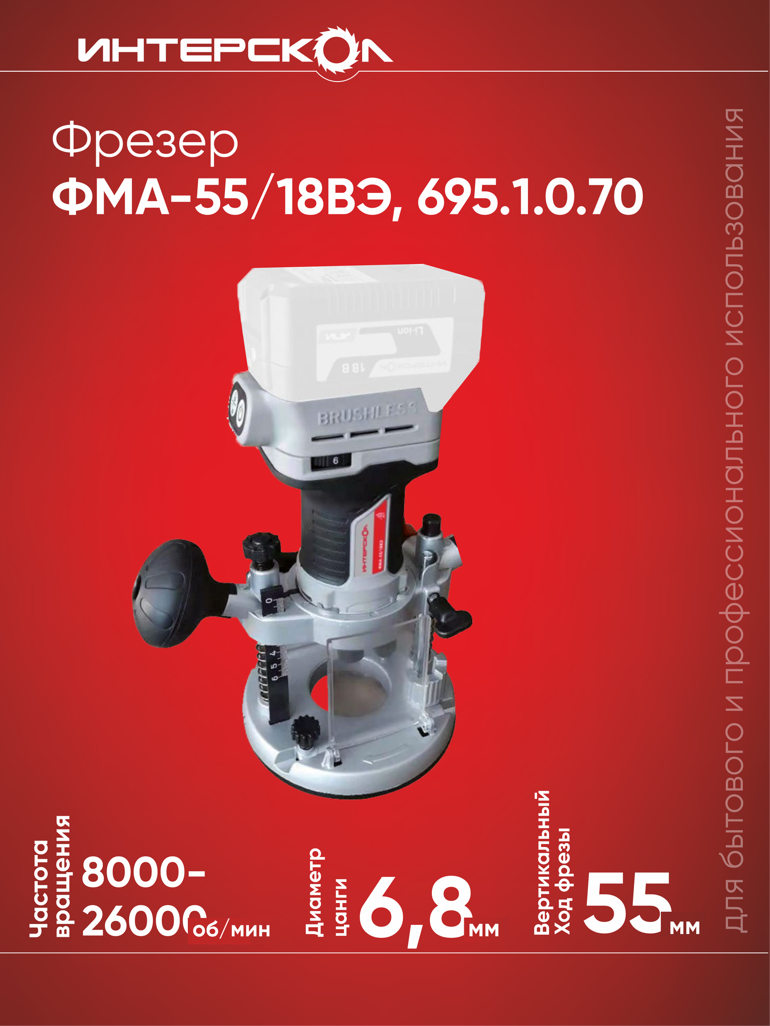 Аккумуляторный бесщёточный фрезер Интерскол ФМА-55/18ВЭ / 695.1.0.70