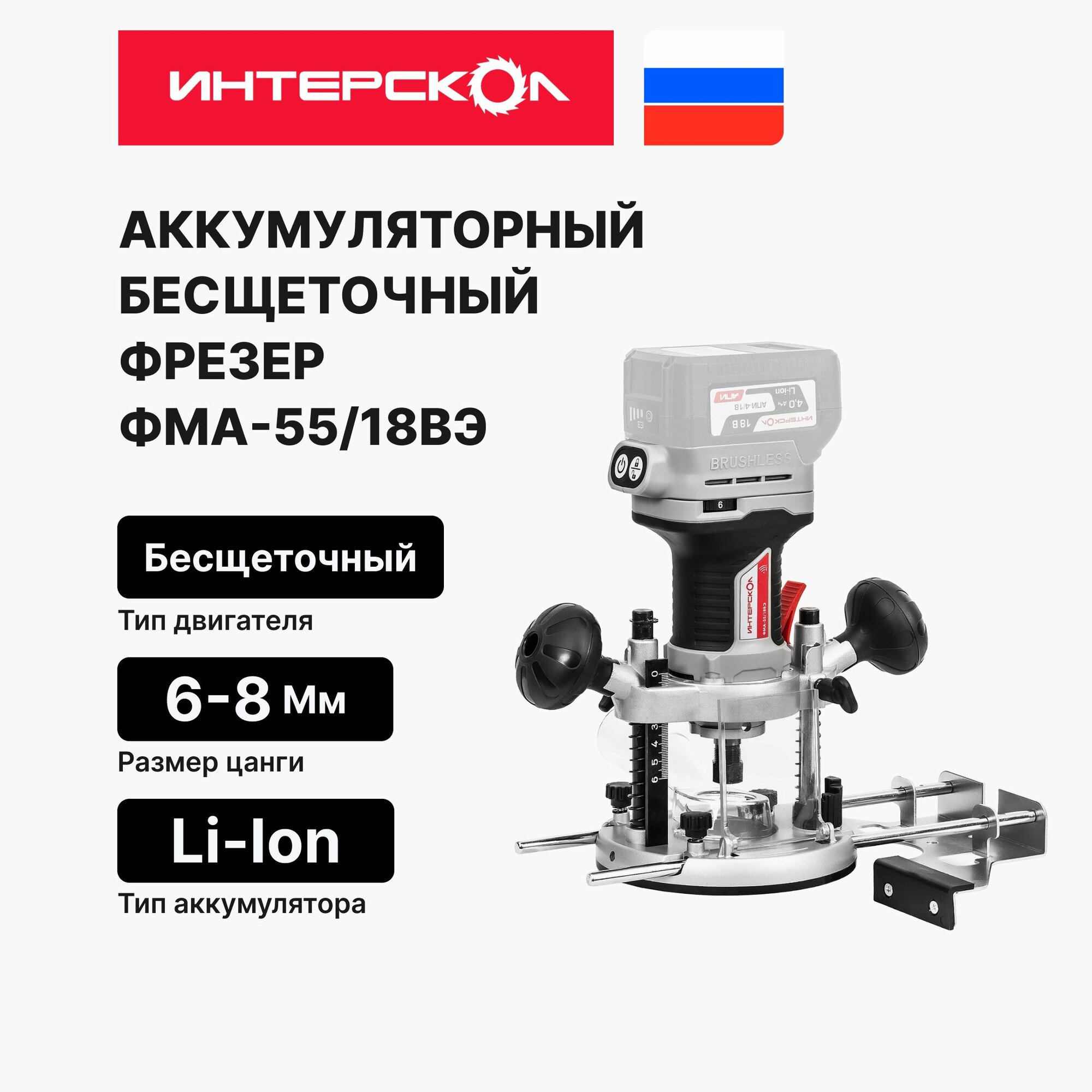 Бесщеточный аккумуляторный фрезер ИНТЕРСКОЛ ФМА-55/18ВЭ 695.1.0.70, АПИ, без АКБ и ЗУ