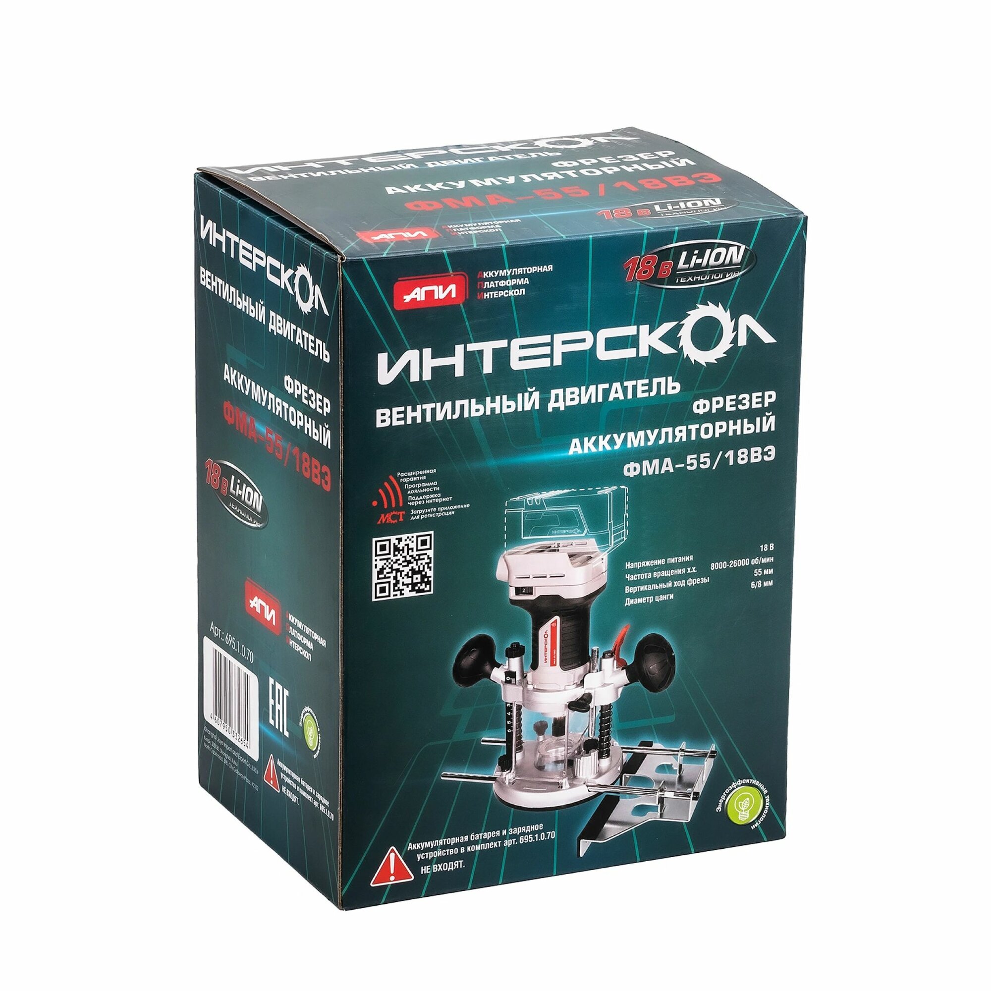 Бесщеточный аккумуляторный фрезер Интерскол ФМА-55/18ВЭ Li-ion АПИ (картон, без аккум. и ЗУ) 695.1.0.70