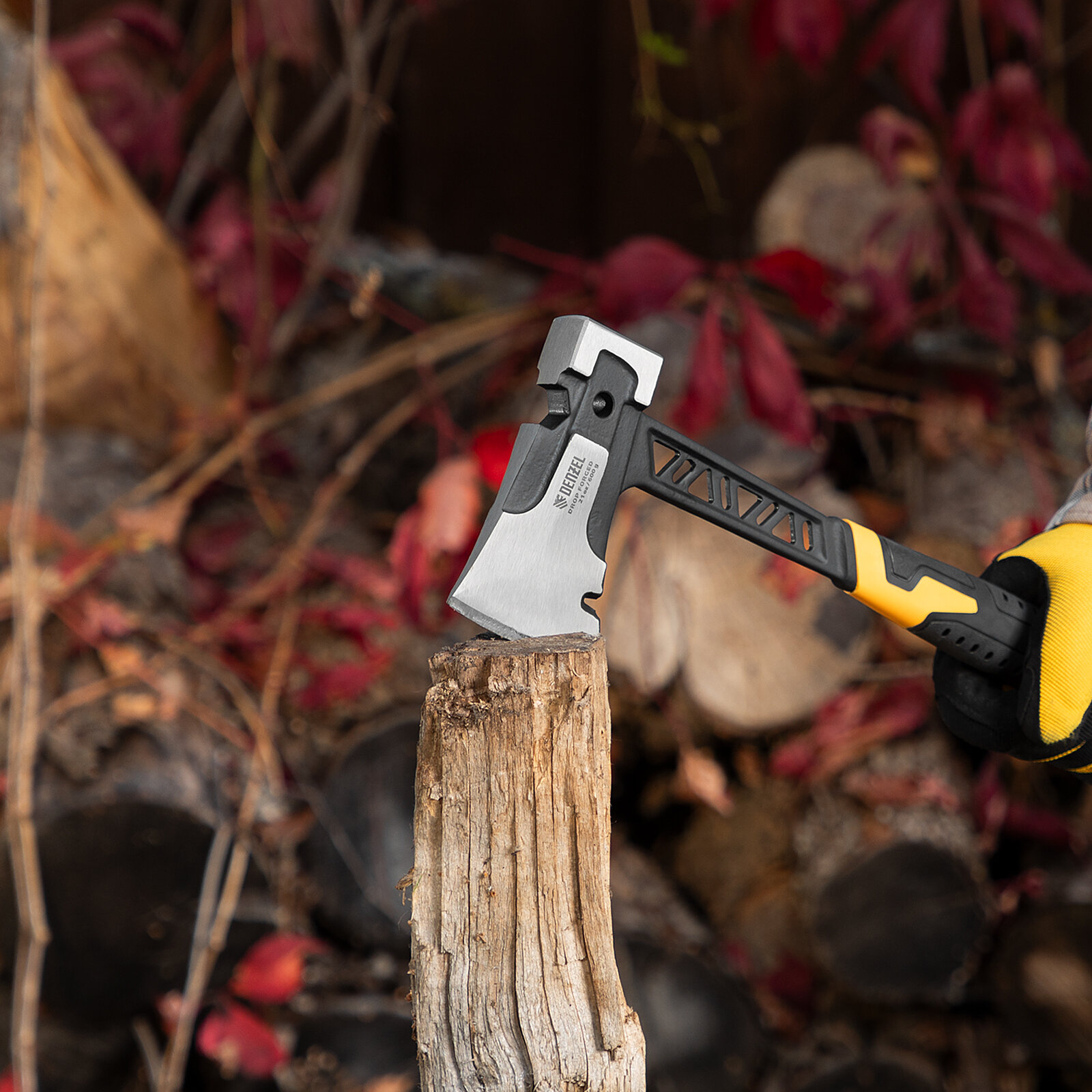 Купить Топор цельнокованый Denzel 600 г, двухкомпонентная обрезиненная рукоятка 21499