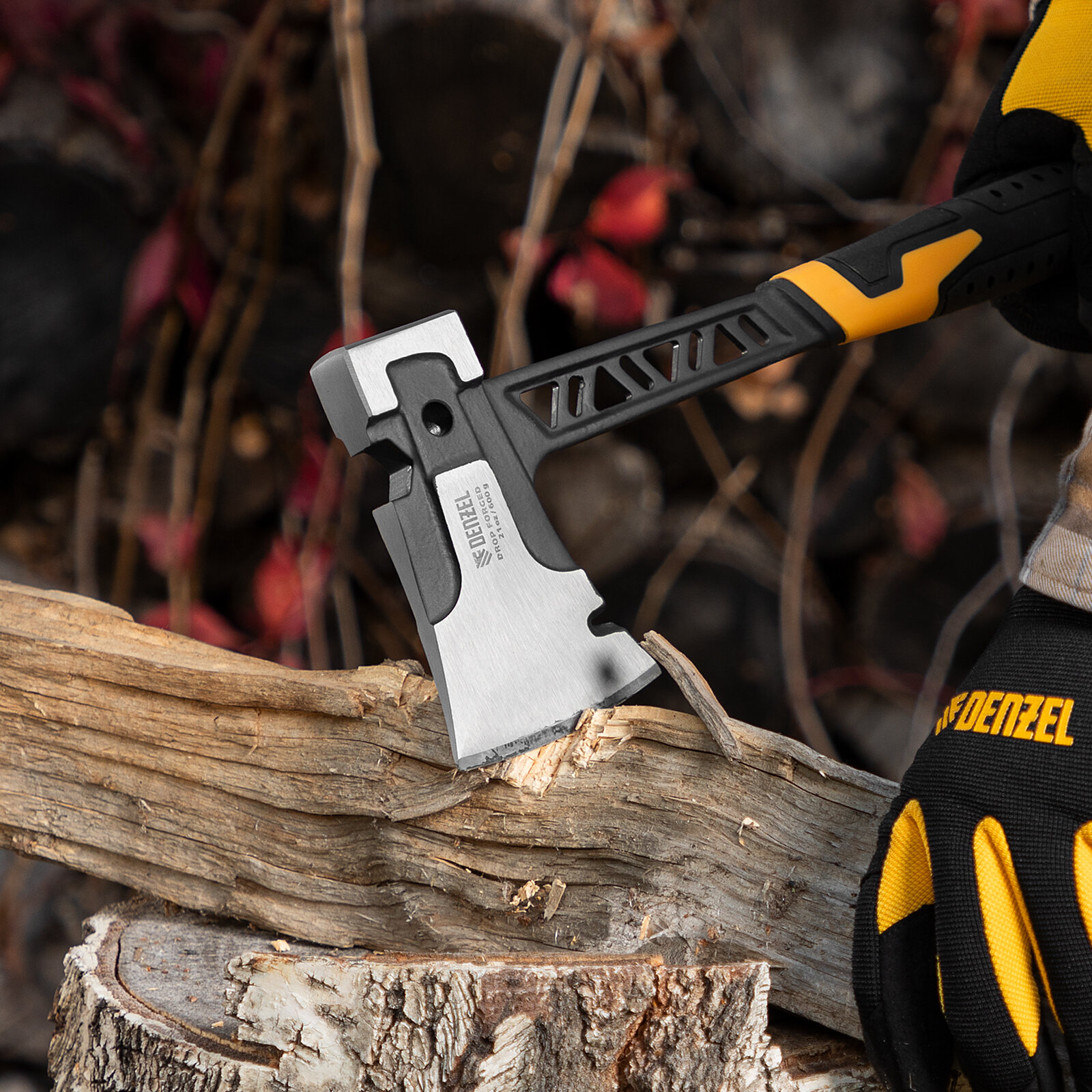 Топор цельнокованый 600 г DENZEL двухкомпонентная обрезиненная рукоятка 21499