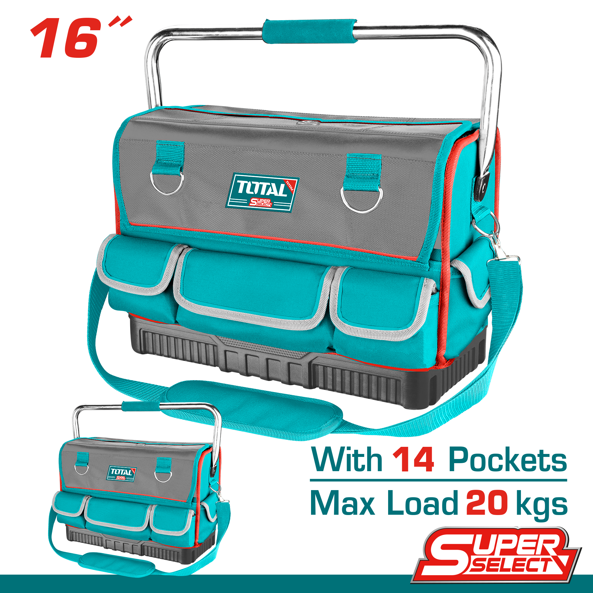 Купить Сумка для инструмента 16", макс 20кг, 14 карманов,двусторон открытие 42*24*33cm TOTAL THT66L12