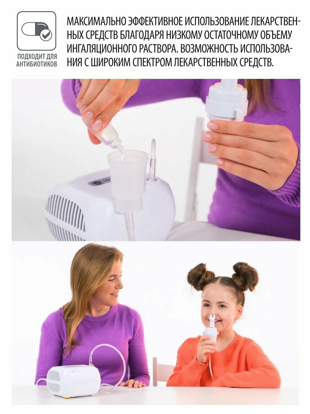 | Насадки в комплекте | маска взрослая / маска детская / насадка для носа |