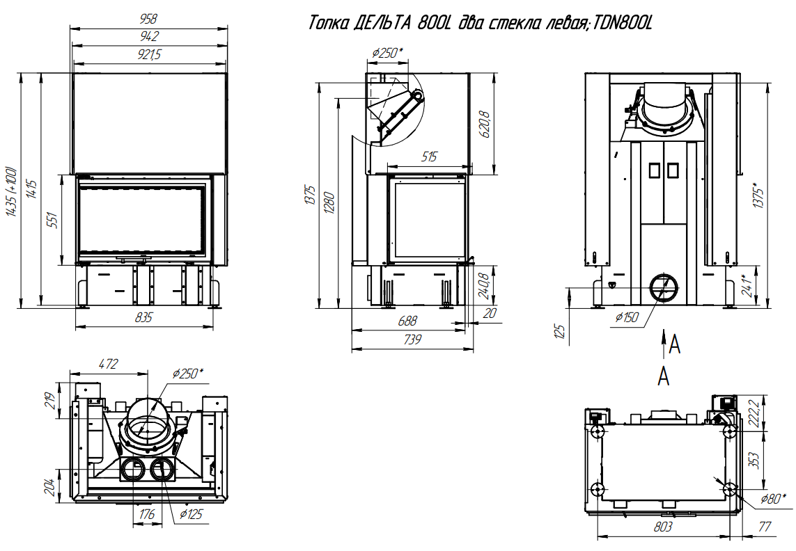 Каминная топка ЭкоКамин Дельта 800 L два стекла левая принтинг (TDN800L) интересное: