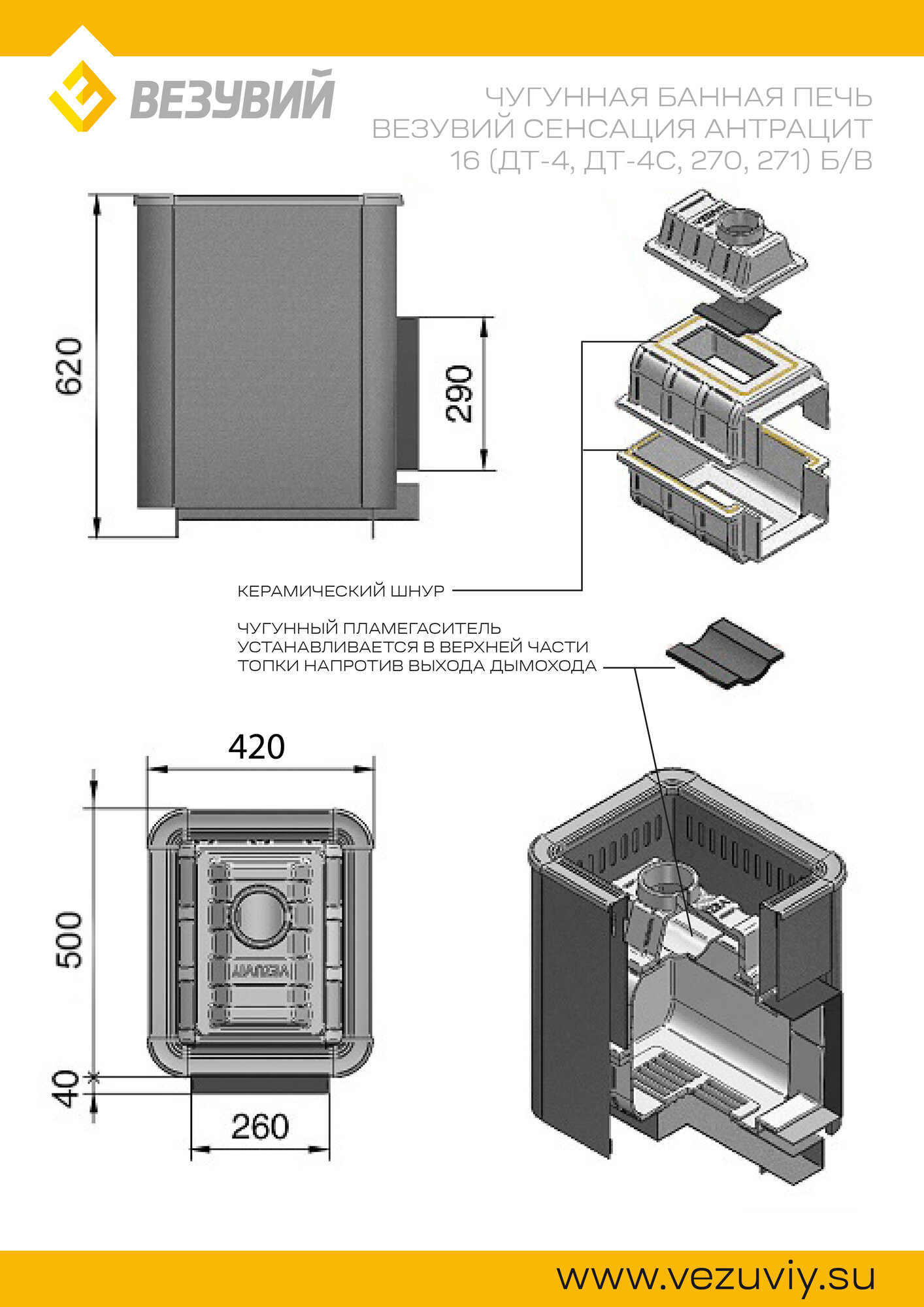 Везувий Чугунная печь для бани Везувий Сенсация 16 Антрацит Б/В (Дверь: ДТ-4)(- -)