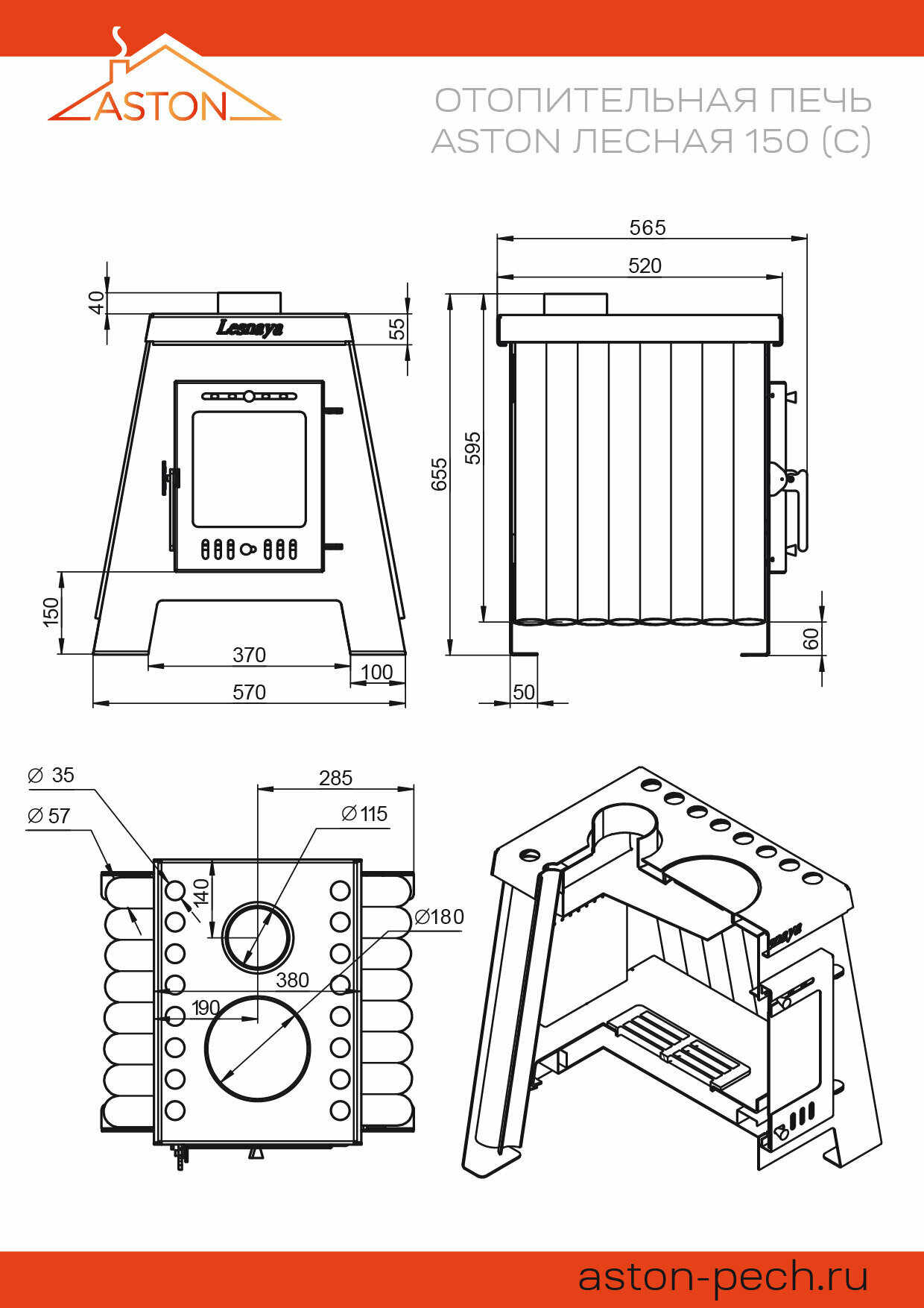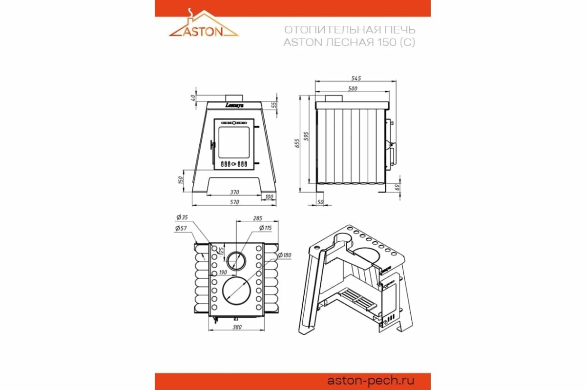 Печь отопительная ASTON "Lesnaya 150" интересное: