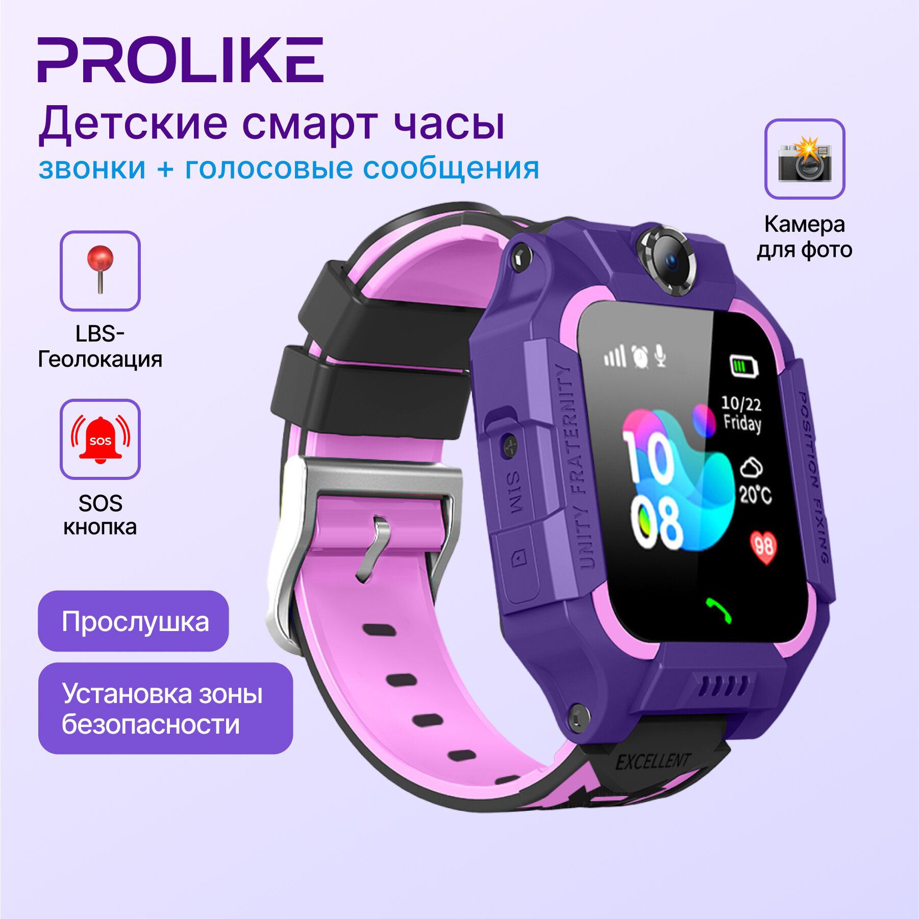 Детские умные часы Prolike PLSW02PP, сиреневые