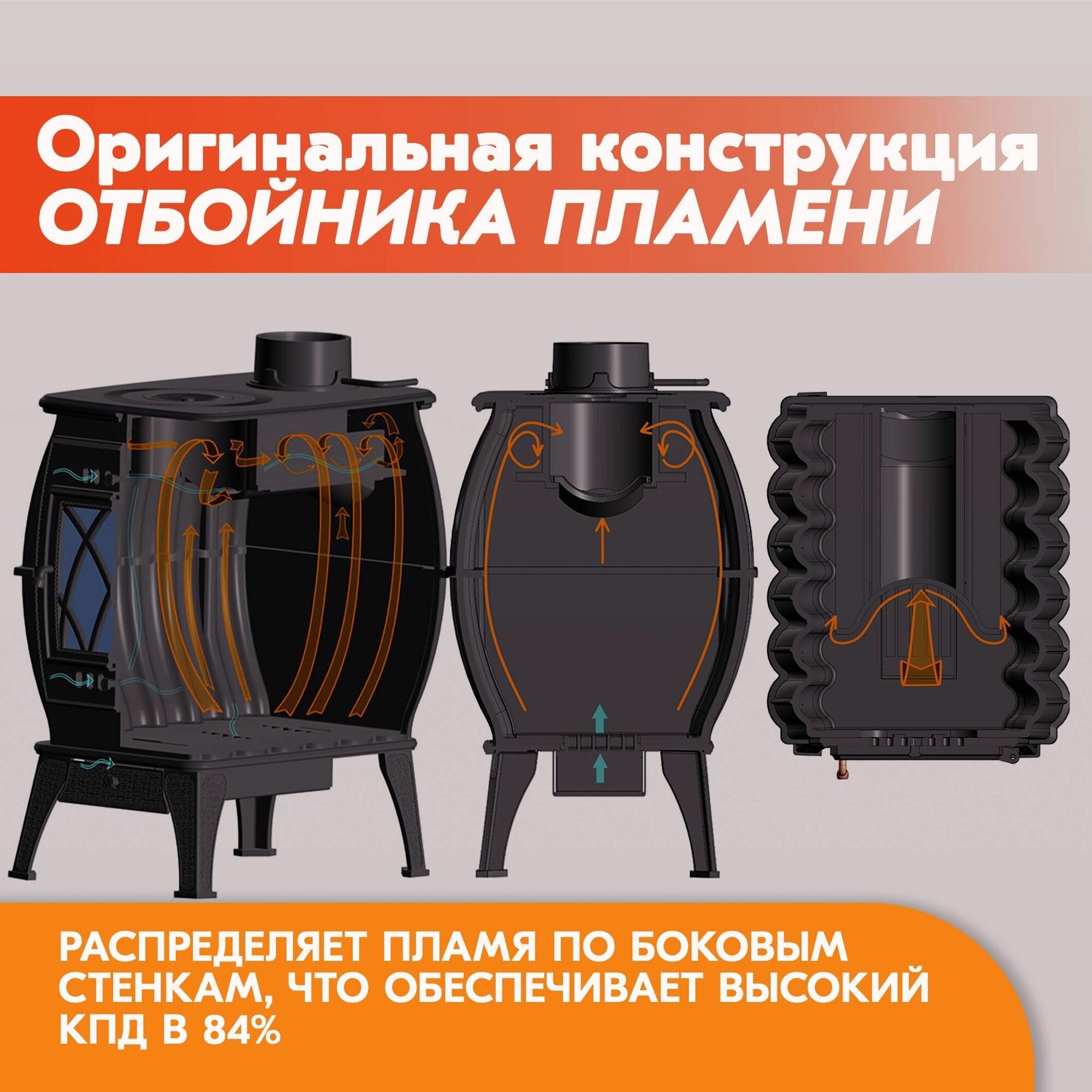 Печь-камин Прометалл Бахта отопительно-варочная (черная) интересное: