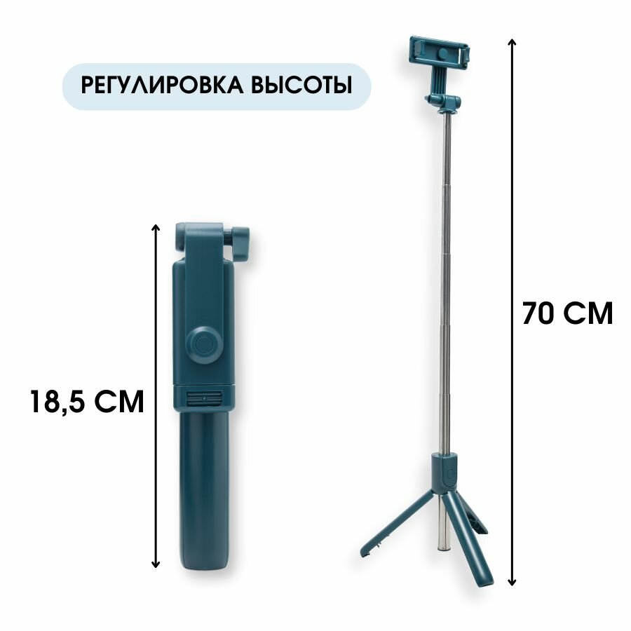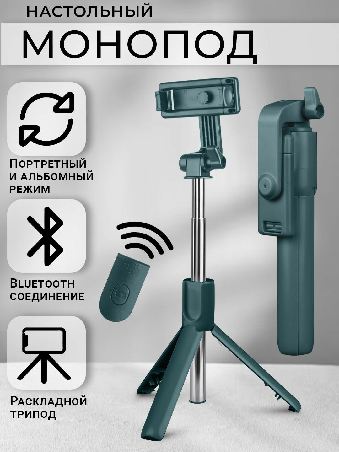 Купить Монопод / Трипод / Селфипалка с Bluetooth пультом R1S / Монопод для селфи / Зеленый