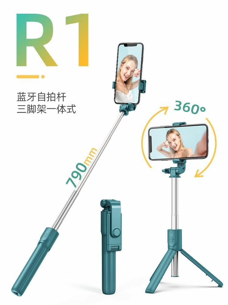 Монопод-трипод для селфи R1S, штатив трипод с регулируемым держателем для телефона и Bluetooth пультом, черный