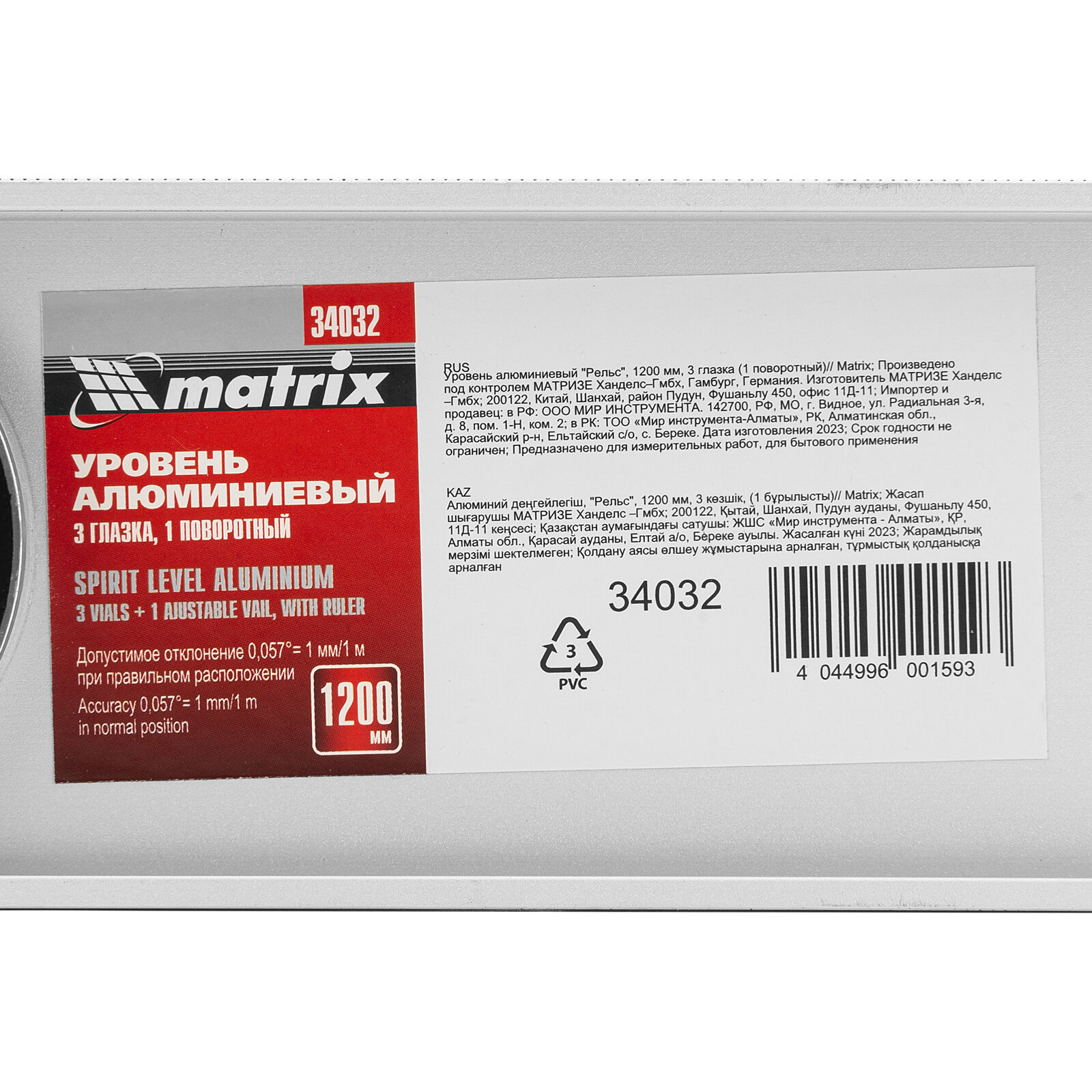Уровень пузырьковый MATRIX 34020 40см, глазков: 3шт