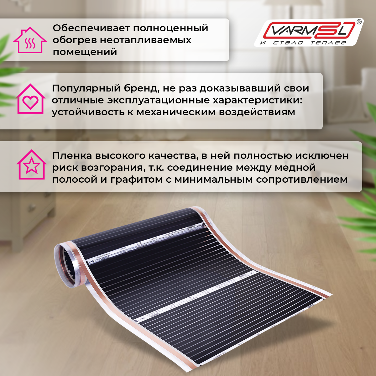 Пленочный теплый пол Varmel ширина 80см длина 3 м. п. / 528 Вт