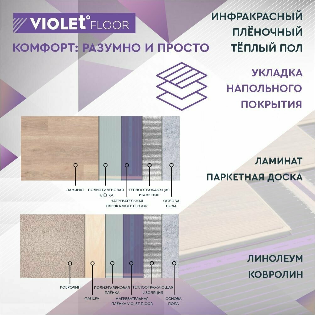 Теплый пол электрический пленочный инфракрасный VIOLET FLOOR 210, 0,5 м2, шир. 0,5 м
