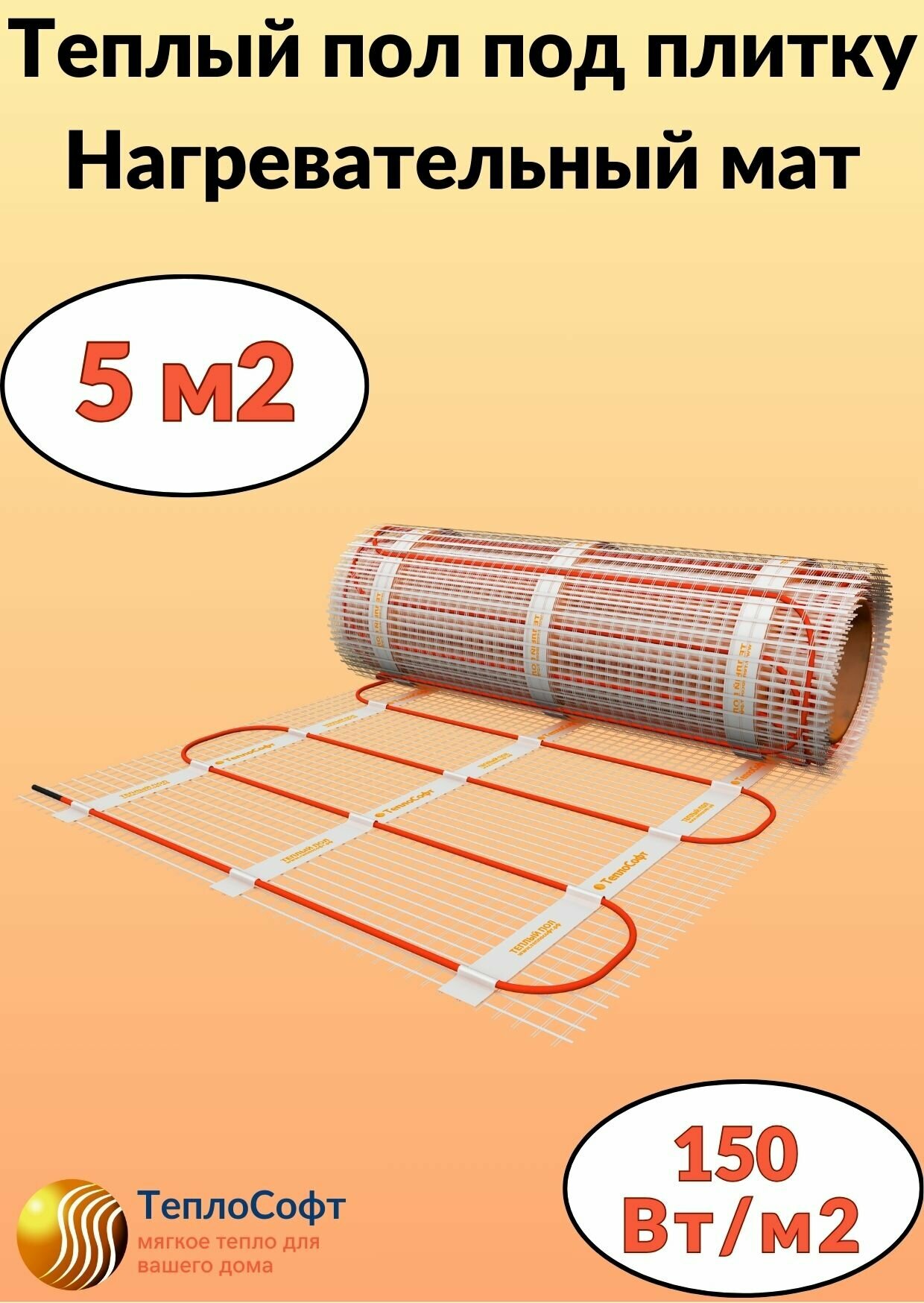 Купить Теплый пол электрический под плитку 5м2. Нагревательный мат Теплософт 5м.кв.