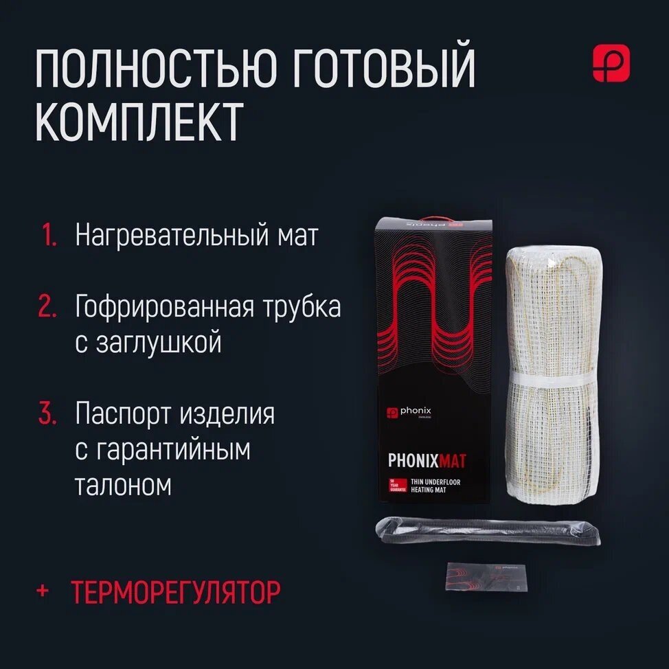 Электрический теплый пол PHONIX 1,0м2, phm-150 Вт/м2 + программируемый терморегулятор белый в комплекте
