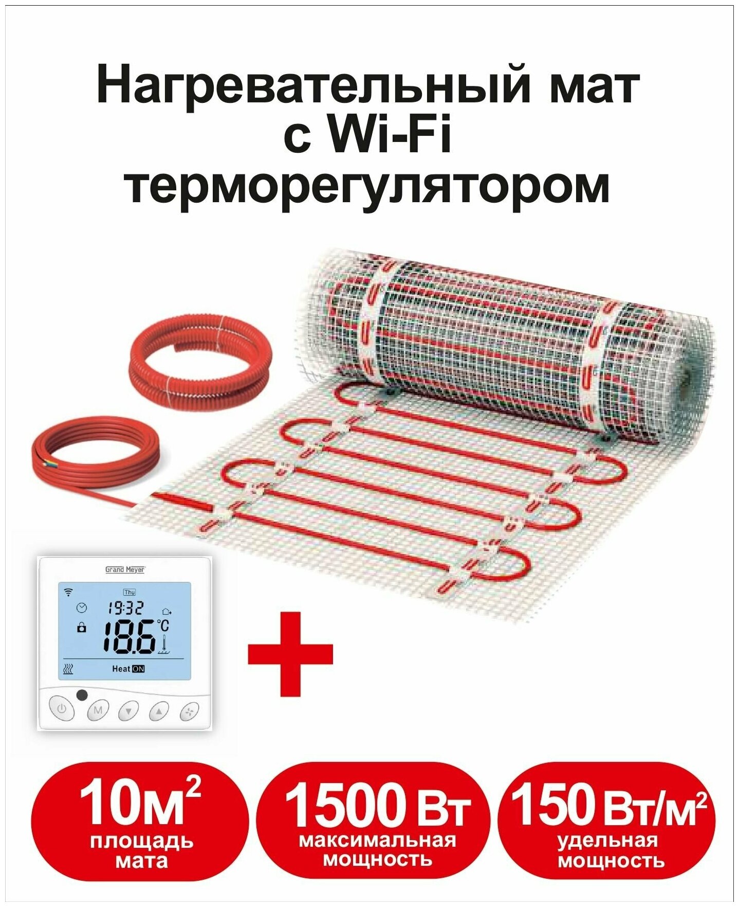 Купить Нагревательный мат, СТН, Квадрат тепла КМ-1500-10,0 150 Вт/м2 с программируемым терморегулятором с Wi-Fi, 10,0 м2, 2000х50 см
