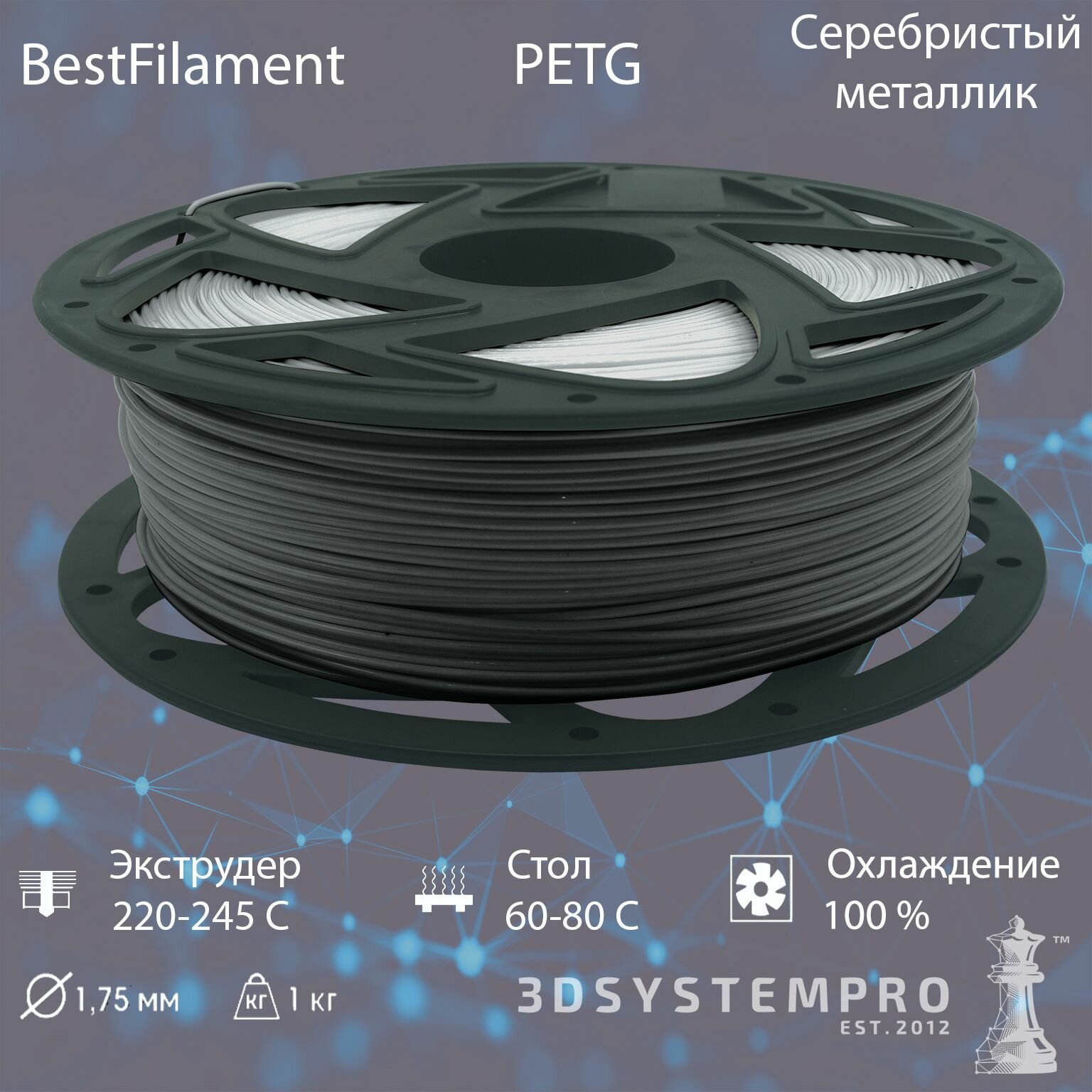 PETG пластик BestFilament, 1.75 мм, серебристый металлик, 1 кг