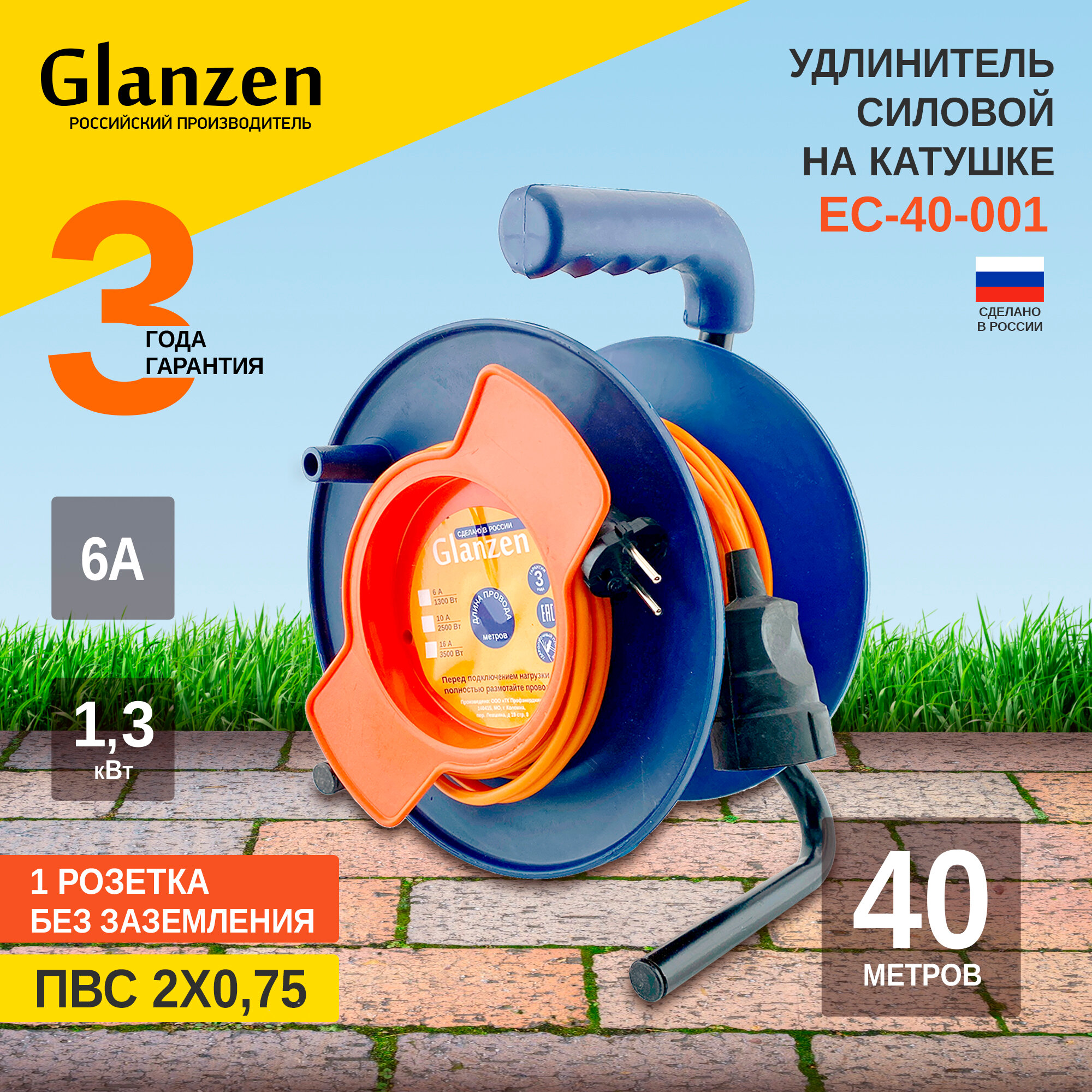 Удлинитель на катушке Glanzen EC-40-001 1 гнездо 1300 Вт 40 м интересное: